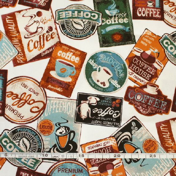 他の画像を見る AS3700-8 生地 オックス生地 オックスプリント カフェ柄 カフェ看板 コーヒー柄 綿100% 巾約110cm (最低単位50cm~10cm単位の切り売り) ¥ 110 税込 お気に入りに登録する