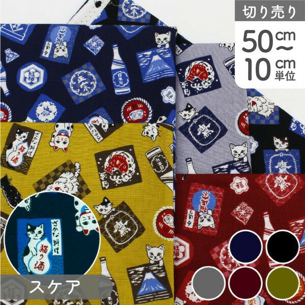 生地 和調スケア 猫 ねこ 巾約112cm 綿100% 和柄 かわいい 小柄 漢字 (最低単位50cm~10cm単位の切り売り) | 手芸材料のネットショップ つくる楽しみ.com