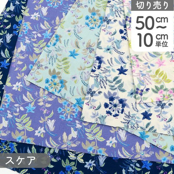 生地 SOLEIL BLUE ベルガーデン スケア プリント (最低単位50cm~10cm単位の切り売り) | 手芸材料のネットショップ つくる楽しみ.com