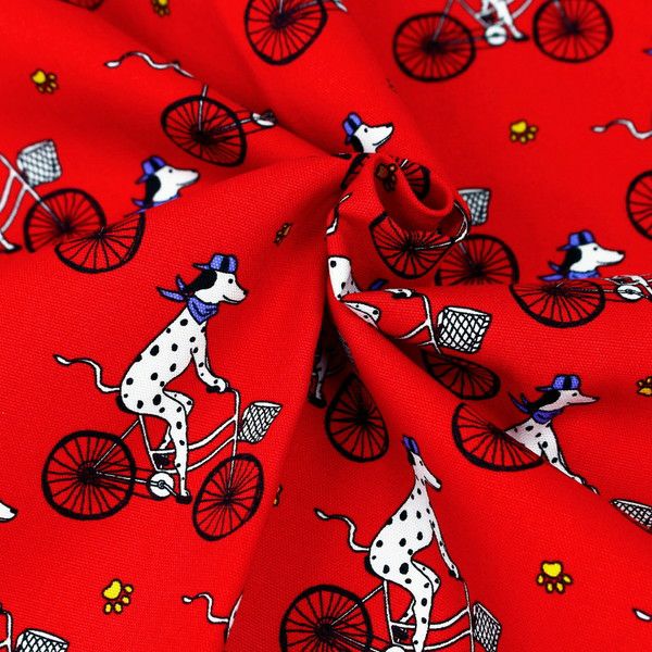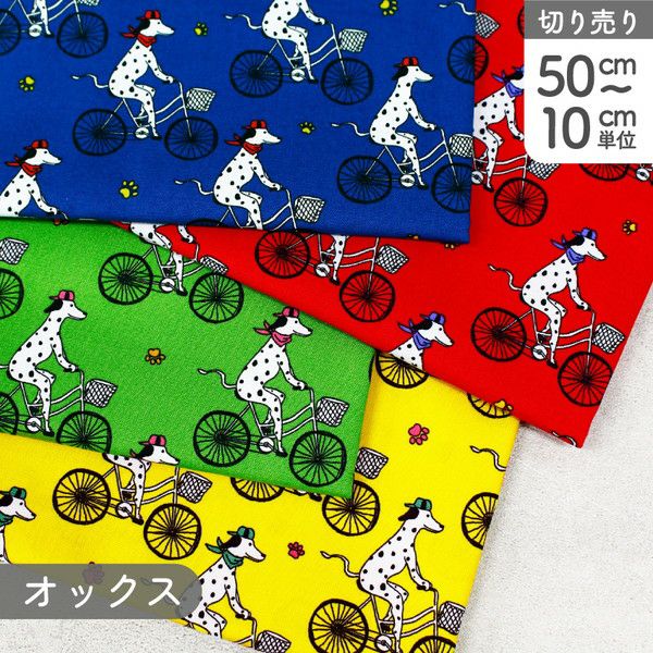 他の画像を見る 生地 布 かわいい ポーチ おしゃれ インテリア パッチワーク 原色 小学生 11月新柄 生地 プリント生地 オックスプリント生地 サイクリング ダルメシアン 巾約110cm (最低単位50cm~10cm単位の切り売り) ¥ 115 税込 お気に入りに登録する
