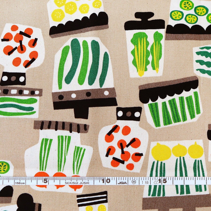 他の画像を見る IBK99413-2 生地 オックス生地 ピクルス柄 野菜プリント ユニークデザイン コットン 布 バッグ 小物 エプロン キッチン雑貨 巾約110cm 最低単位50cm~10cm単位の切売 ¥ 115 税込 お気に入りに登録する