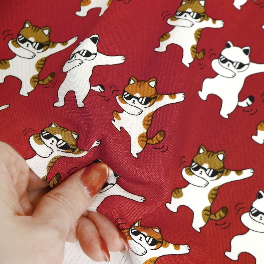 他の画像を見る IBK99414-1 生地 オックス生地 ねこ柄 ダンスキャット おもしろプリント コットン 布 バッグ 小物 入園入学グッズ 巾約110cm 最低単位50cm~10cm単位の切売 ¥ 115 税込 お気に入りに登録する
