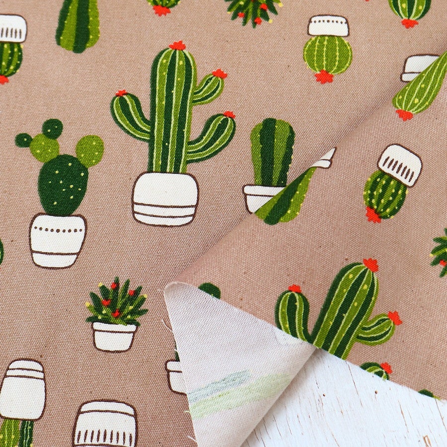 他の画像を見る IBK99414-2 生地 オックス生地 サボテン柄 ボタニカル プリント コットン 布 バッグ インテリア エプロン ハンドメイド 巾約110cm 最低単位50cm~10cm単位の切売 ¥ 115 税込 お気に入りに登録する