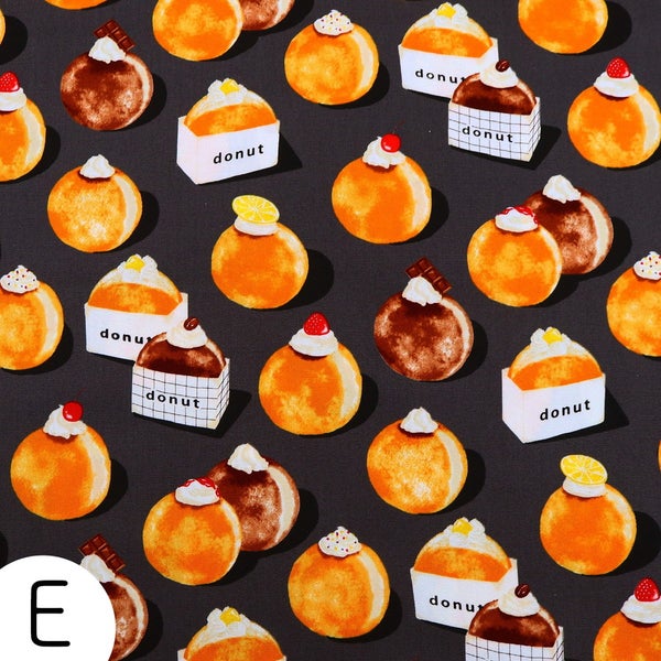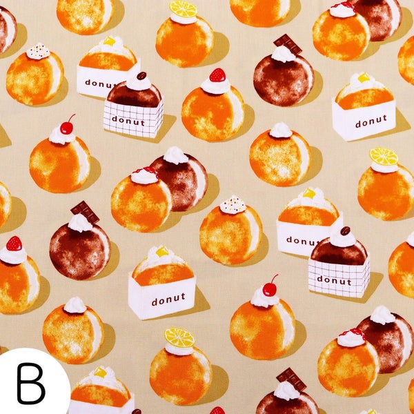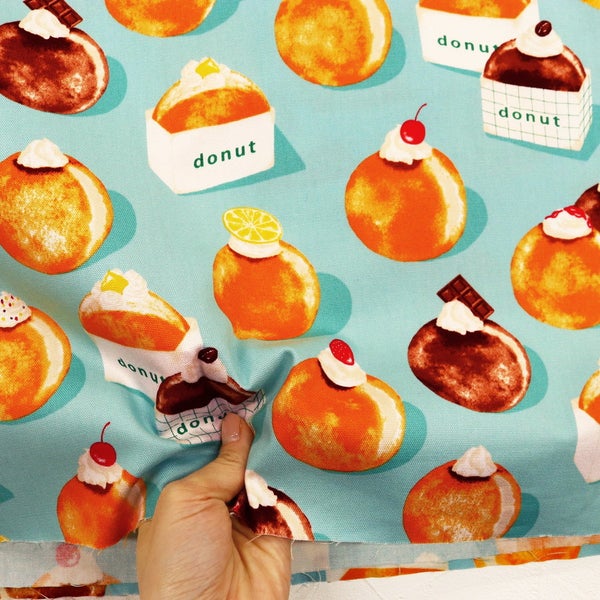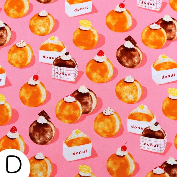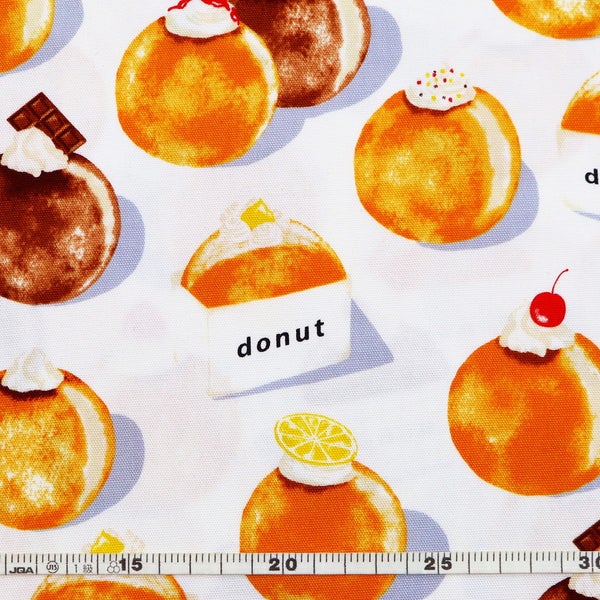 生地 オックス生地 プリント生地 ドーナツ柄 巾約110cm 入園入学 レッスンバッグ 通園バッグ 巾着 エプロン ポーチ ハンドメイド 手芸 布 コットン かわいい スイーツ柄 女の子 男の子 学校準備 最低単位50cm~10cm単位の切売