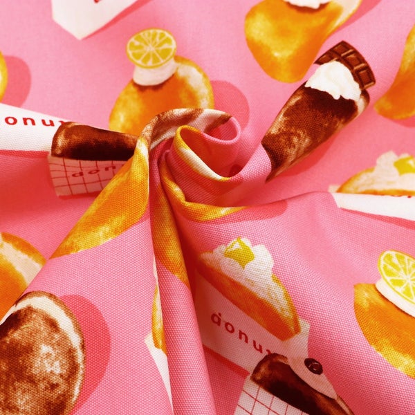 生地 オックス生地 プリント生地 ドーナツ柄 巾約110cm 入園入学 レッスンバッグ 通園バッグ 巾着 エプロン ポーチ ハンドメイド 手芸 布 コットン かわいい スイーツ柄 女の子 男の子 学校準備 最低単位50cm~10cm単位の切売 | 手芸材料のネットショップ つくる楽しみ.com