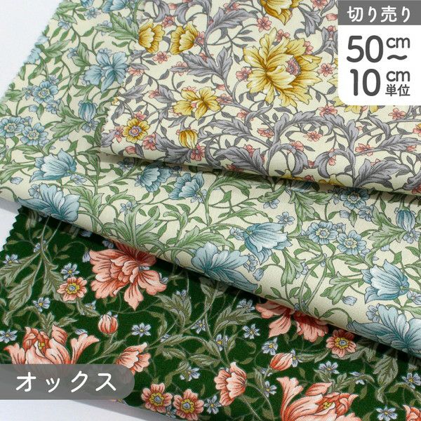 花柄 ボタニカル エレガントオックス プリント生地 巾約110cm (最低単位50cm~10cm単位の切り売り) | 手芸材料のネットショップ つくる楽しみ.com