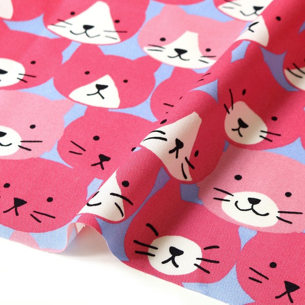 生地 オックス生地 ねこ柄 カラフル キャット フェイスプリント コットン 布 入園入学 通園バッグ レッスンバッグ 巾約106cm 最低単位50cm~10cm単位の切売 | 手芸材料のネットショップ つくる楽しみ.com
