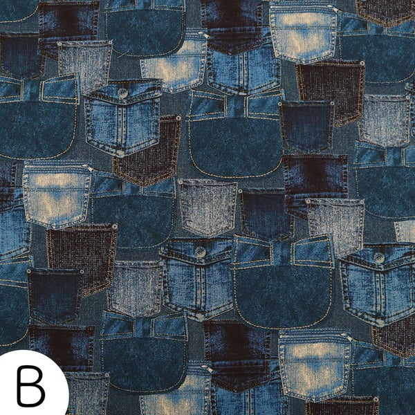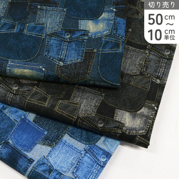 生地 オックス生地 プリント生地 パッチワークデニム柄 巾約110cm 入園入学 レッスンバッグ 通園バッグ トートバッグ エプロン 男の子 女の子 カジュアル風 ヴィンテージ調 ハンドメイド 手芸 布 コットン 学校準備 最低単位50cm~10cm単位の切売 | 手芸材料のネットショップ つくる楽しみ.com