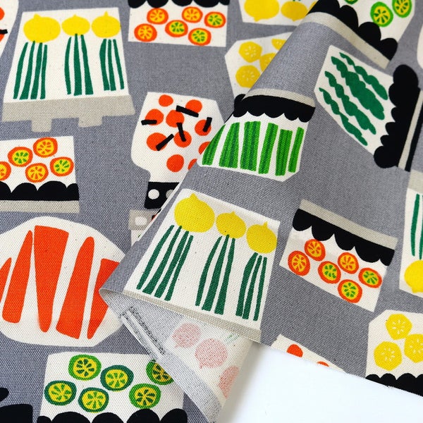 生地 オックス生地 ピクルス柄 野菜プリント ユニークデザイン コットン 布 バッグ 小物 エプロン キッチン雑貨 巾約110cm 最低単位50cm~10cm単位の切売 | 手芸材料のネットショップ つくる楽しみ.com