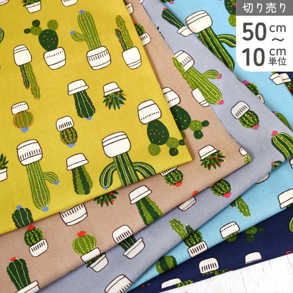 生地 オックス生地 サボテン柄 ボタニカル プリント コットン 布 バッグ インテリア エプロン ハンドメイド 巾約110cm 最低単位50cm~10cm単位の切売 | 手芸材料のネットショップ つくる楽しみ.com