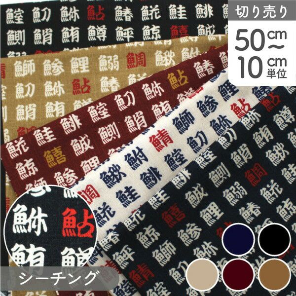 生地 和調シーチング 寿司 鮨 巾約112cm 綿100% 湯呑 漢字 (最低単位50cm~10cm単位の切り売り) | 手芸材料のネットショップ つくる楽しみ.com
