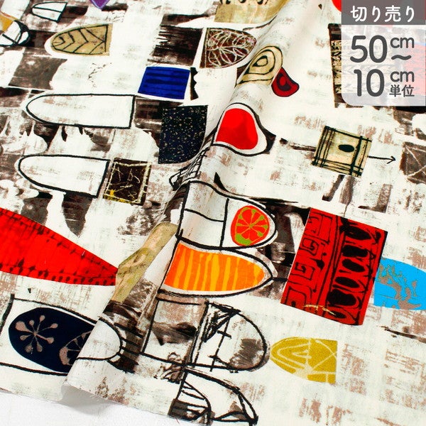 4. 輸入生地 生地 アイボリー地 カラフル図形柄 WINDHAM FABRICS USAプリント生地 インテリア クッション 大柄 オシャレ (最低単位50cm~10cm単位の切売)