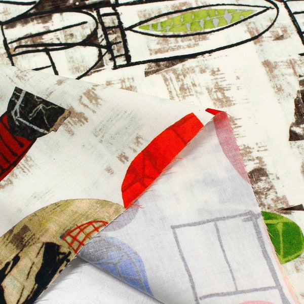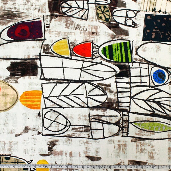 5. 輸入生地 生地 アイボリー地 カラフル図形柄 WINDHAM FABRICS USAプリント生地 インテリア クッション 大柄 オシャレ (最低単位50cm~10cm単位の切売)