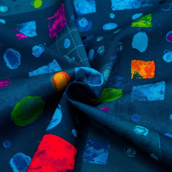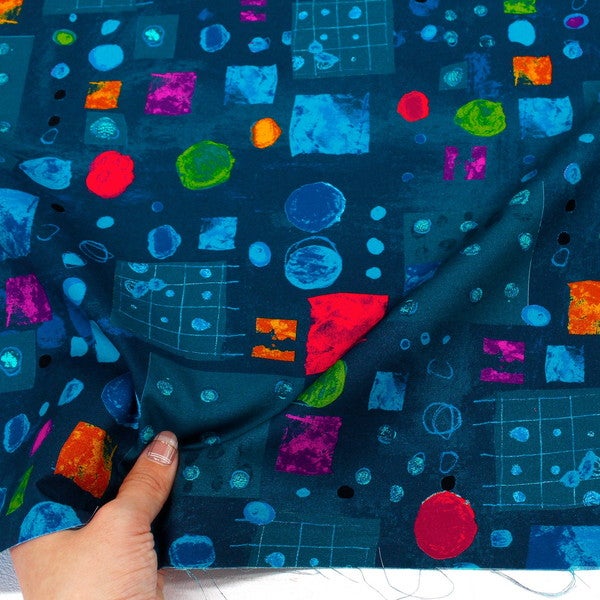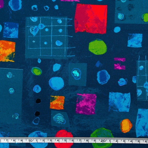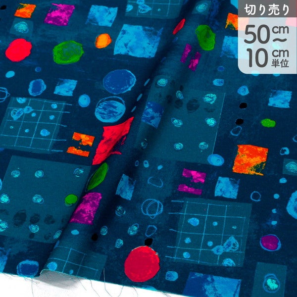 輸入生地 生地 ネイビー地 赤黄丸四角模様 WINDHAM FABRICS USAプリント生地 インテリア クッション 大柄 オシャレ (最低単位50cm~10cm単位の切売) | 手芸材料のネットショップ つくる楽しみ.com