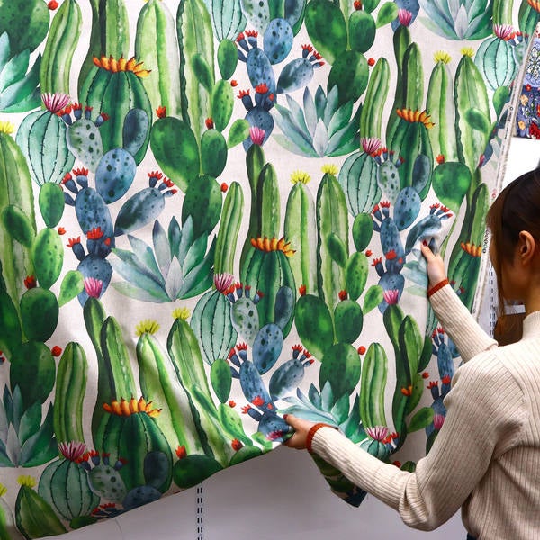 他の画像を見る IBK99414-2 生地 オックス生地 サボテン柄 ボタニカル プリント コットン 布 バッグ インテリア エプロン ハンドメイド 巾約110cm 最低単位50cm~10cm単位の切売 ¥ 115 税込 お気に入りに登録する