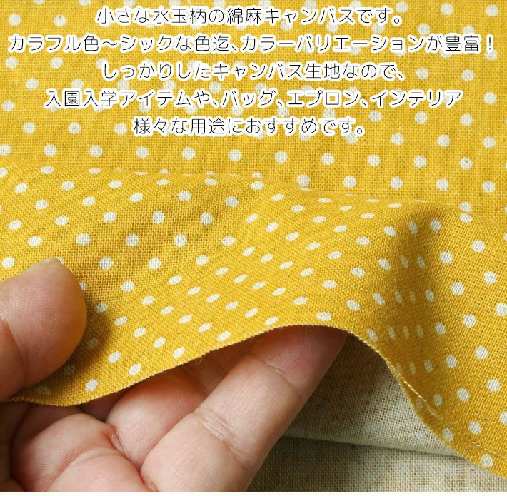他の画像を見る 19000-1 生地 水玉 ドット ピンドット 約2mm 綿麻キャンバス プリント ハーフリネン (最低単位50cm~10cm単位の切売り) ¥ 77 税込 品切中 お気に入りに登録する