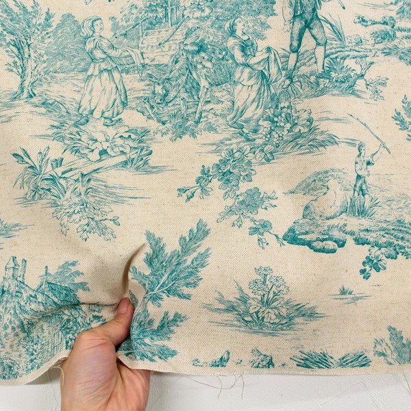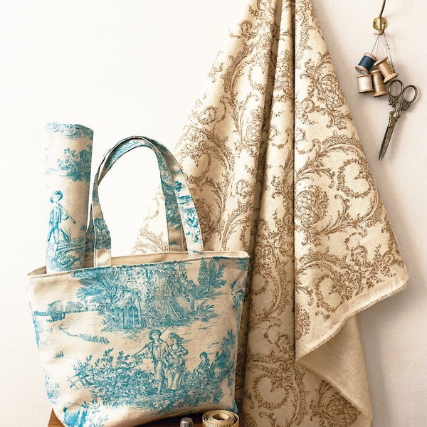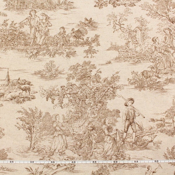 輸入生地 生地 インポート Toile de Jouy-トワルドジュイ 綿麻プリント 巾約140cm (最低単位50cm~10cm単位の切り売り) | 手芸材料のネットショップ つくる楽しみ.com