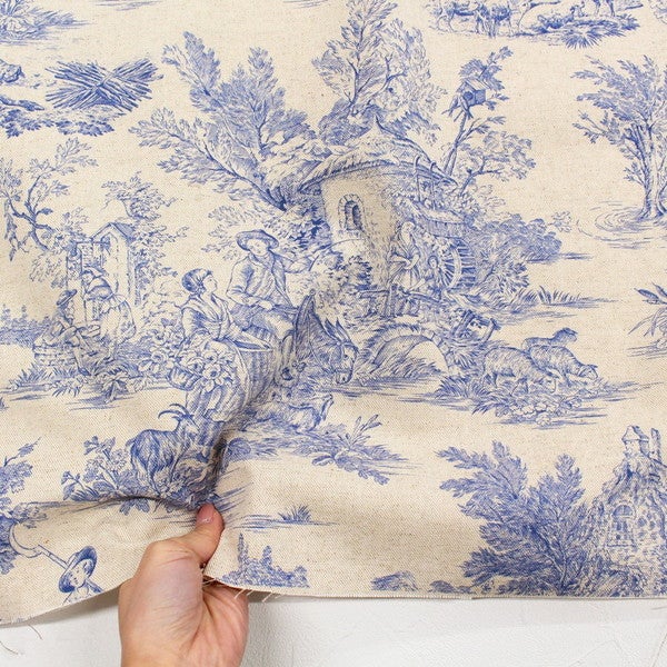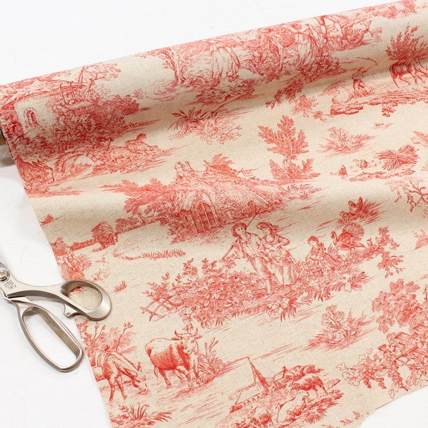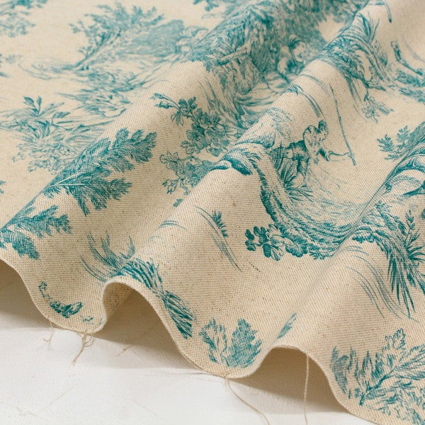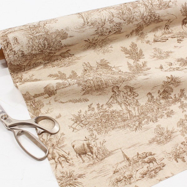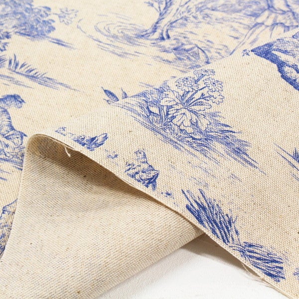 輸入生地 生地 インポート Toile de Jouy-トワルドジュイ 綿麻プリント 巾約140cm (最低単位50cm~10cm単位の切り売り)