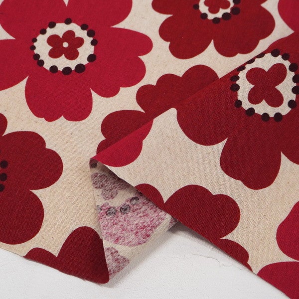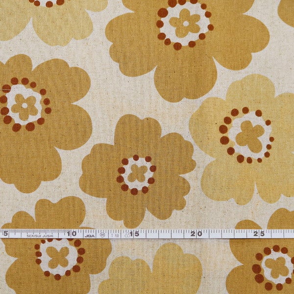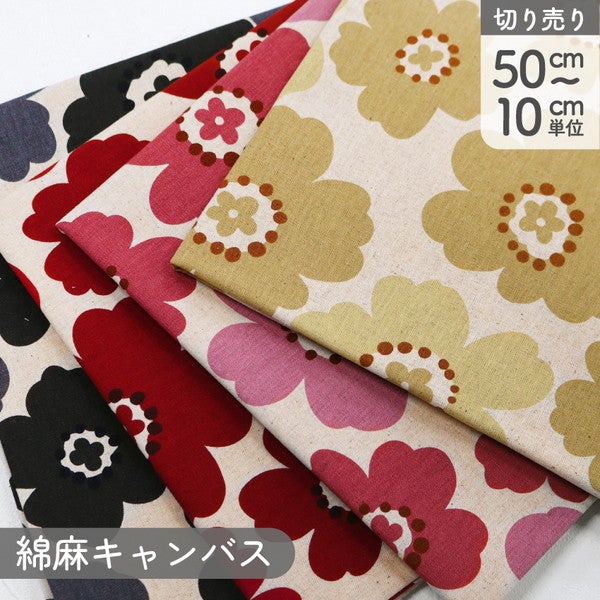 生地 綿麻プリント生地 レトロフラワー 幅約110cm (最低単位50cm~10cm単位の切売)