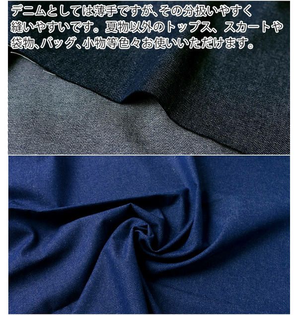 キーワード/綿 家庭用ミシンで縫える 薄手デニム インディコ インディゴ ネイビー ブルー ブラック ワークウエア ワークウェア ソーイング バッグ バック かばん 鞄 スカート エプロン インテリア ヒッコリーやハンプと相性が良い 入園入学 布 手芸 手作り てづくり ハンドメイド