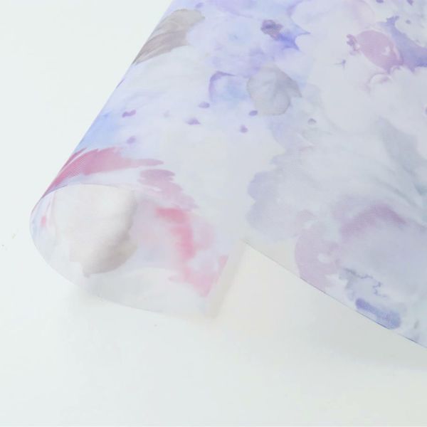 生地 ナイロン 転写チュール ハードチュール 水彩風 紫 花柄 巾約68cm (最低単位50cm~10cm単位の切売り)
