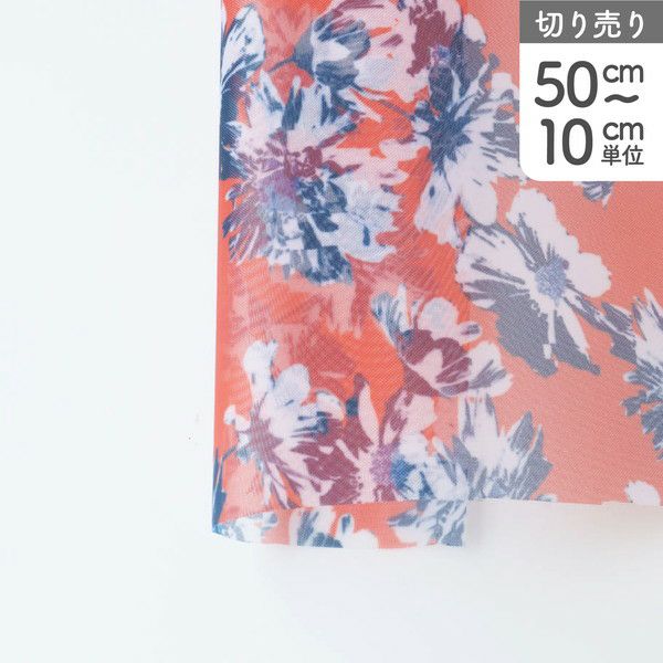 生地 ナイロン 転写チュール ハードチュール オレンジ ネイビー花柄 巾約68cm (最低単位50cm~10cm単位の切売り) | 手芸材料のネットショップ つくる楽しみ.com