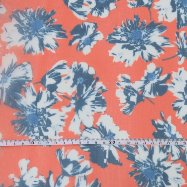 生地 ナイロン 転写チュール ハードチュール オレンジ ネイビー花柄 巾約68cm (最低単位50cm~10cm単位の切売り)