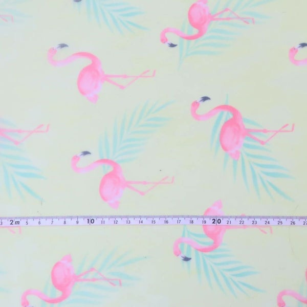 生地 ナイロン 転写チュール ハードチュール イエロー ピンクフラミンゴ 巾約68cm (最低単位50cm~10cm単位の切売り)