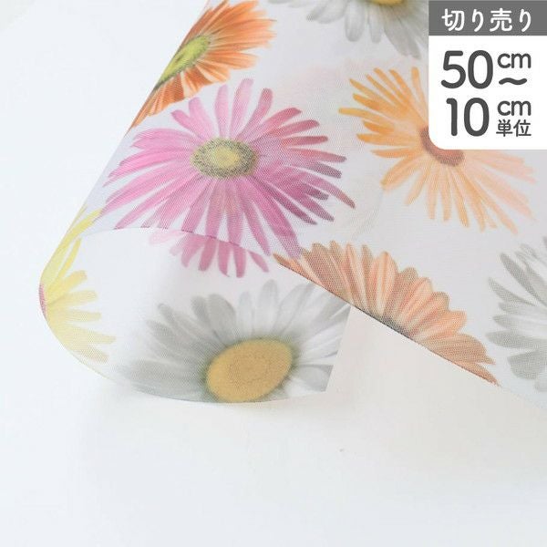 5. 生地 ナイロン 転写チュール ハードチュール ホワイト地 カラフル花柄 巾約68cm (最低単位50cm~10cm単位の切売り)