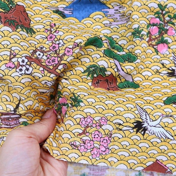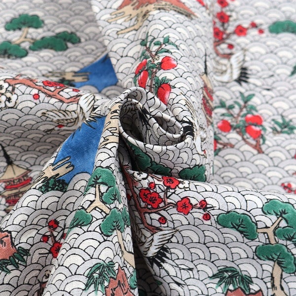 生地 布 ドビー生地 和柄 鶴と海 巾約110cm 50cm~10cm単位切り売り | 手芸材料のネットショップ つくる楽しみ.com