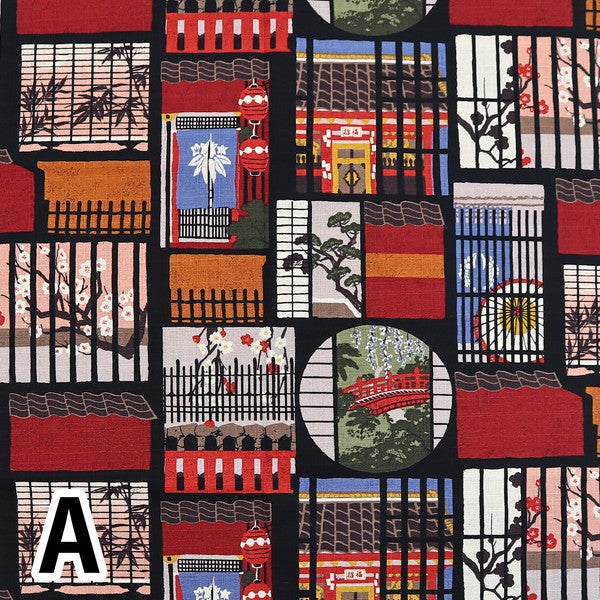 生地 布 ドビー生地 和柄 街並み 巾約110cm 50cm~10cm単位切り売り | 手芸材料のネットショップ つくる楽しみ.com