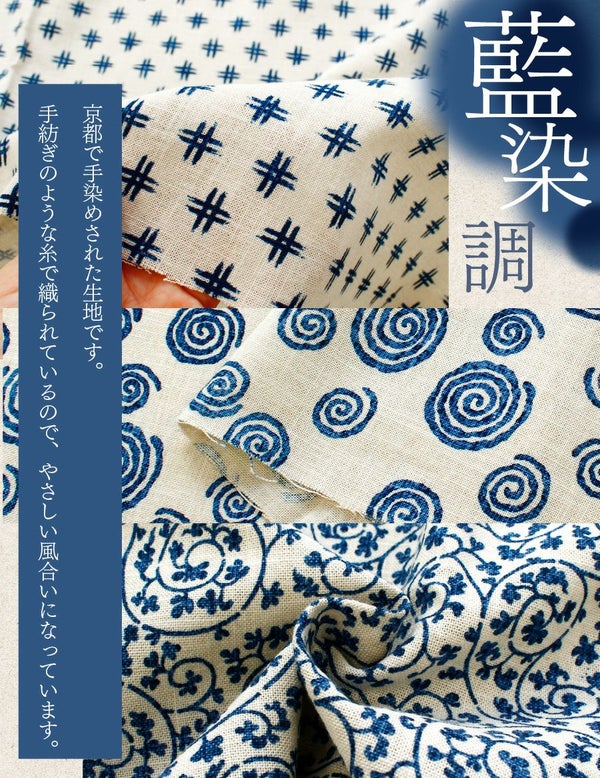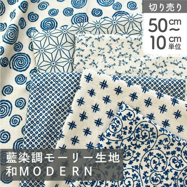 生地 和調生地 藍染調モーリー生地 和モダン 和柄 手捺染 綿100% 約110cm巾 | 手芸材料のネットショップ つくる楽しみ.com
