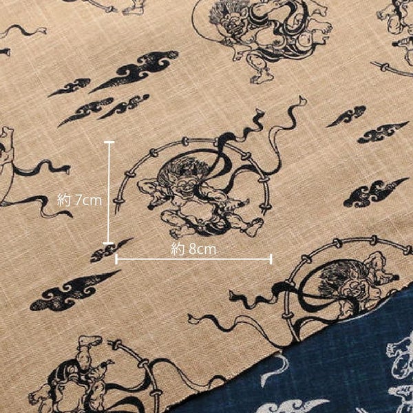 生地 風神雷神 むら糸藍染調 プリント生地 和調プリントムラ糸クロス 藍染 藍染調ブッチャー 最低単位50cm~10cm単位の切売り | 手芸材料のネットショップ つくる楽しみ.com