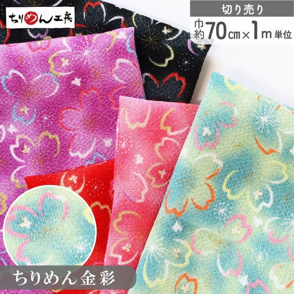 6. ちりめん 生地 金彩 約70cm×1m単位 切り売り レーヨン100% ライン桜 金彩メーター売り つまみ細工 古典柄 和柄 小物 手芸