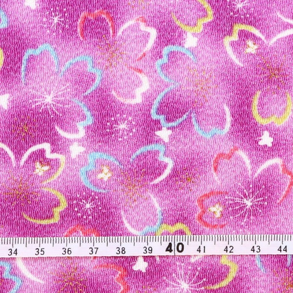 5. ちりめん 生地 金彩 約70cm×1m単位 切り売り レーヨン100% ライン桜 金彩メーター売り つまみ細工 古典柄 和柄 小物 手芸