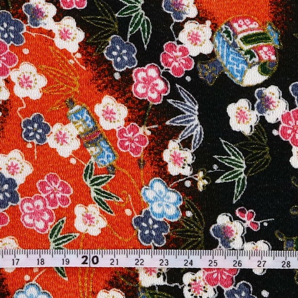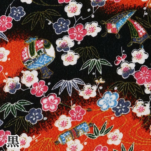 6. ちりめん 生地 金彩 約70cm×1m単位 切り売り レーヨン100% 小槌と竹梅 金彩メーター売り つまみ細工 古典柄 和柄 小物 手芸