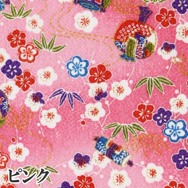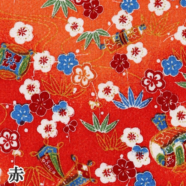 5. ちりめん 生地 金彩 約70cm×1m単位 切り売り レーヨン100% 小槌と竹梅 金彩メーター売り つまみ細工 古典柄 和柄 小物 手芸
