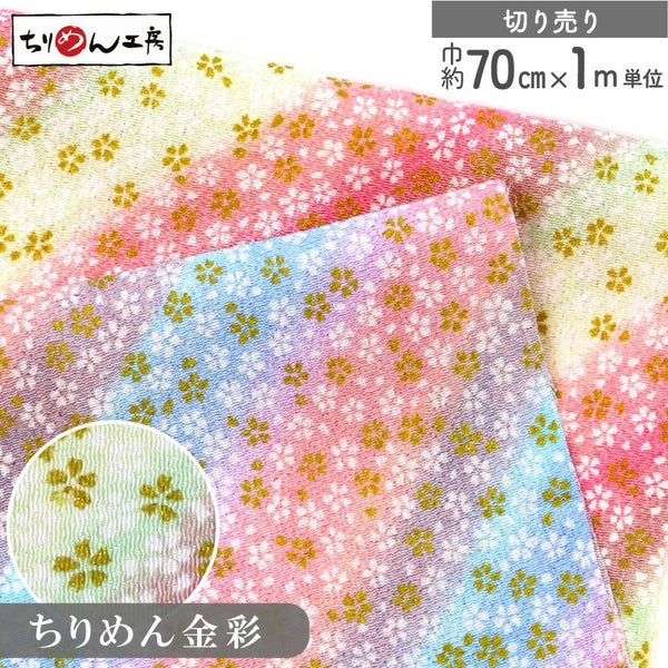 6. ちりめん 生地 金彩 約70cm×1m単位 切り売り レーヨン100% 小桜 グラデーション 金彩メーター売り つまみ細工 古典柄 和柄 小物 手芸
