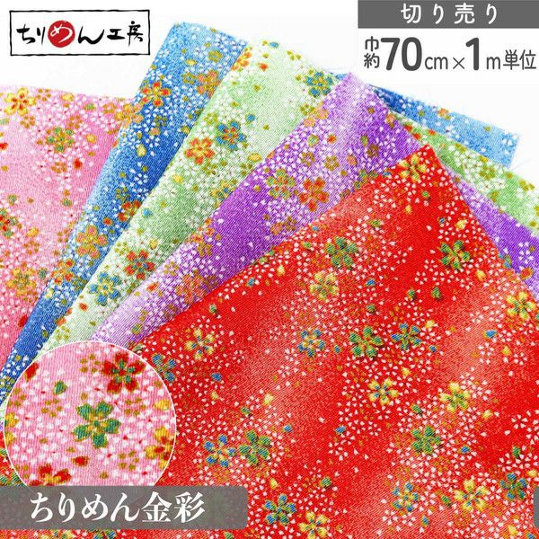 キーワード:ちりめん 和布 レーヨン 生地 切り売り 手芸 和小物 つまみ細工 矢絣 金彩なし 金彩 無地 小柄 1m単位 幅約70cm