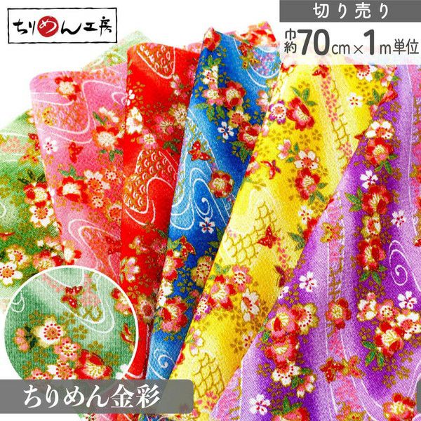 キーワード:ちりめん 和布 レーヨン 生地 切り売り 手芸 和小物 つまみ細工 矢絣 金彩なし 金彩 無地 小柄 1m単位 幅約70cm