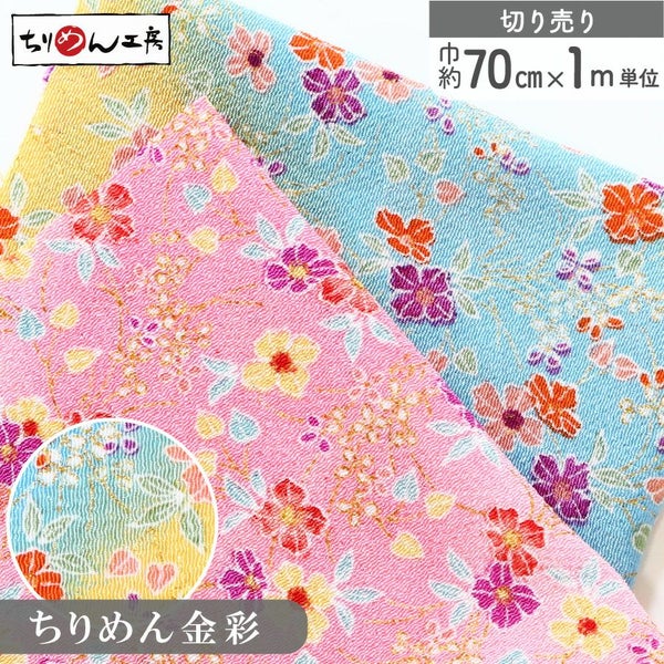 5. ちりめん 生地 金彩 約70cm×1m単位 切り売り レーヨン100% 桔梗とボカシ 金彩メーター売り つまみ細工 古典柄 和柄 小物 手芸