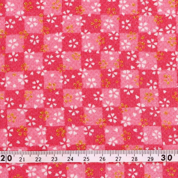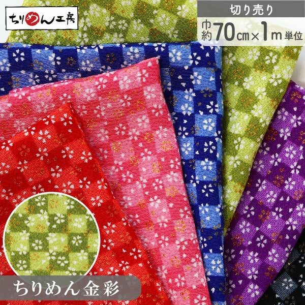 5. ちりめん 生地 金彩 約70cm×1m単位 切り売り レーヨン100% 小桜と市松 金彩メーター売り つまみ細工 古典柄 和柄 小物 手芸