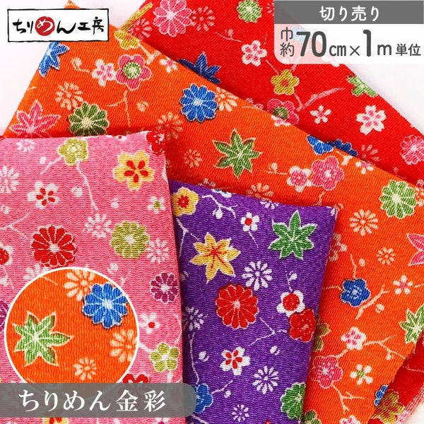 キーワード:ちりめん 和布 レーヨン 生地 切り売り 手芸 和小物 つまみ細工 矢絣 金彩なし 金彩 無地 小柄 1m単位 幅約70cm