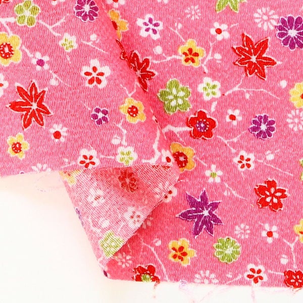 しぼ感のあるレーヨンちりめん。和小物・つまみ細工・インテリア小物づくりに幅広く使える定番生地です。矢絣などの和柄合わせにも相性がよく、やわらかな落ち感と上品な光沢が作品をきれいに見せます。