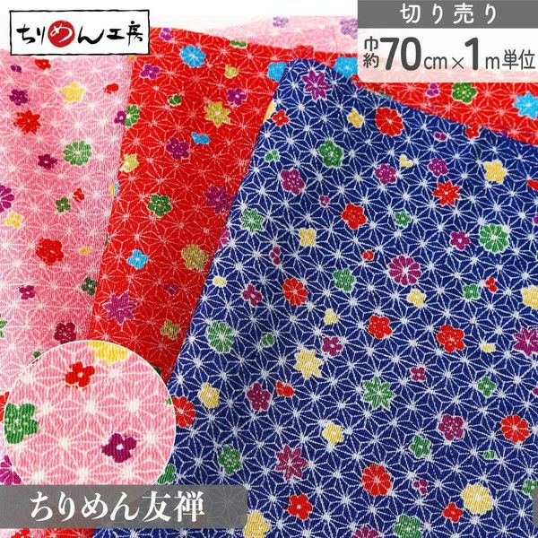 キーワード:ちりめん 和布 レーヨン 生地 切り売り 手芸 和小物 つまみ細工 矢絣 金彩なし 金彩 無地 小柄 1m単位 幅約70cm