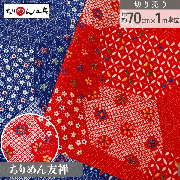 キーワード:ちりめん 和布 レーヨン 生地 切り売り 手芸 和小物 つまみ細工 矢絣 金彩なし 金彩 無地 小柄 1m単位 幅約70cm