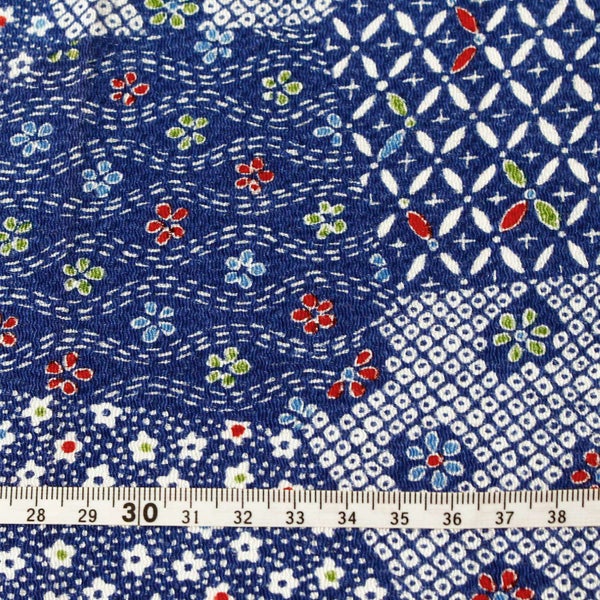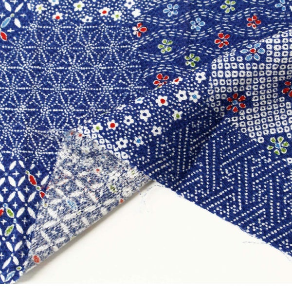 Y146-CUT ちりめん 友禅 切り売り 約23×33cm 小花と麻の葉パッチワーク 和手芸 ちりめん細工 70cm×1m単位の切り売り 和柄 ちりめん生地 小物 手縫い レーヨン100%