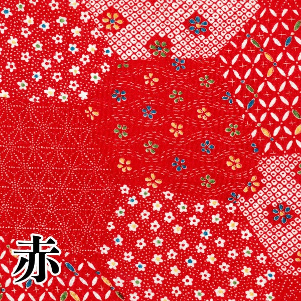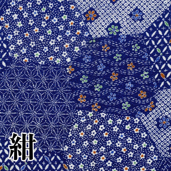 6. ちりめん 友禅 切り売り 約23×33cm 小花と麻の葉パッチワーク 和手芸 ちりめん細工 70cm×1m単位の切り売り 和柄 ちりめん生地 小物 手縫い レーヨン100%