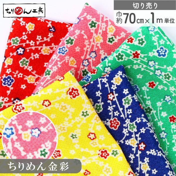 5. ちりめん 生地 金彩 約70cm×1m単位 切り売り レーヨン100% 小梅枝メーター売り つまみ細工 古典柄 和柄 小物 手芸