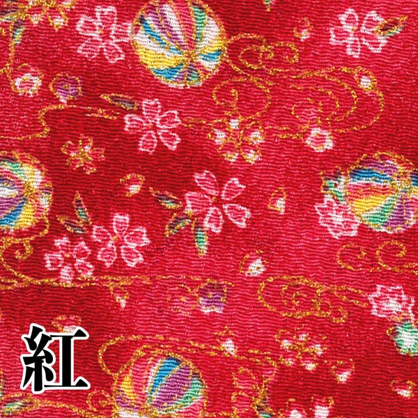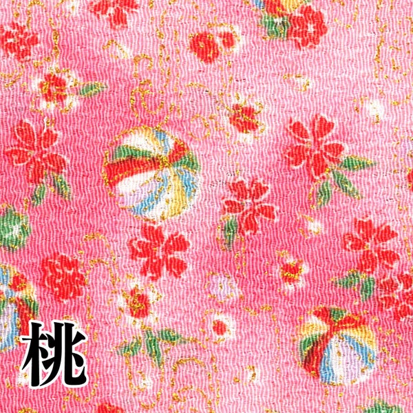 5. ちりめん 金彩 カットクロス 約23×33cm てまりと桜 和手芸 ちりめん細工 カットクロス はぎれ 和柄 ちりめん生地 小物 手縫い レーヨン100% 和柄生地 手芸・和小物材料